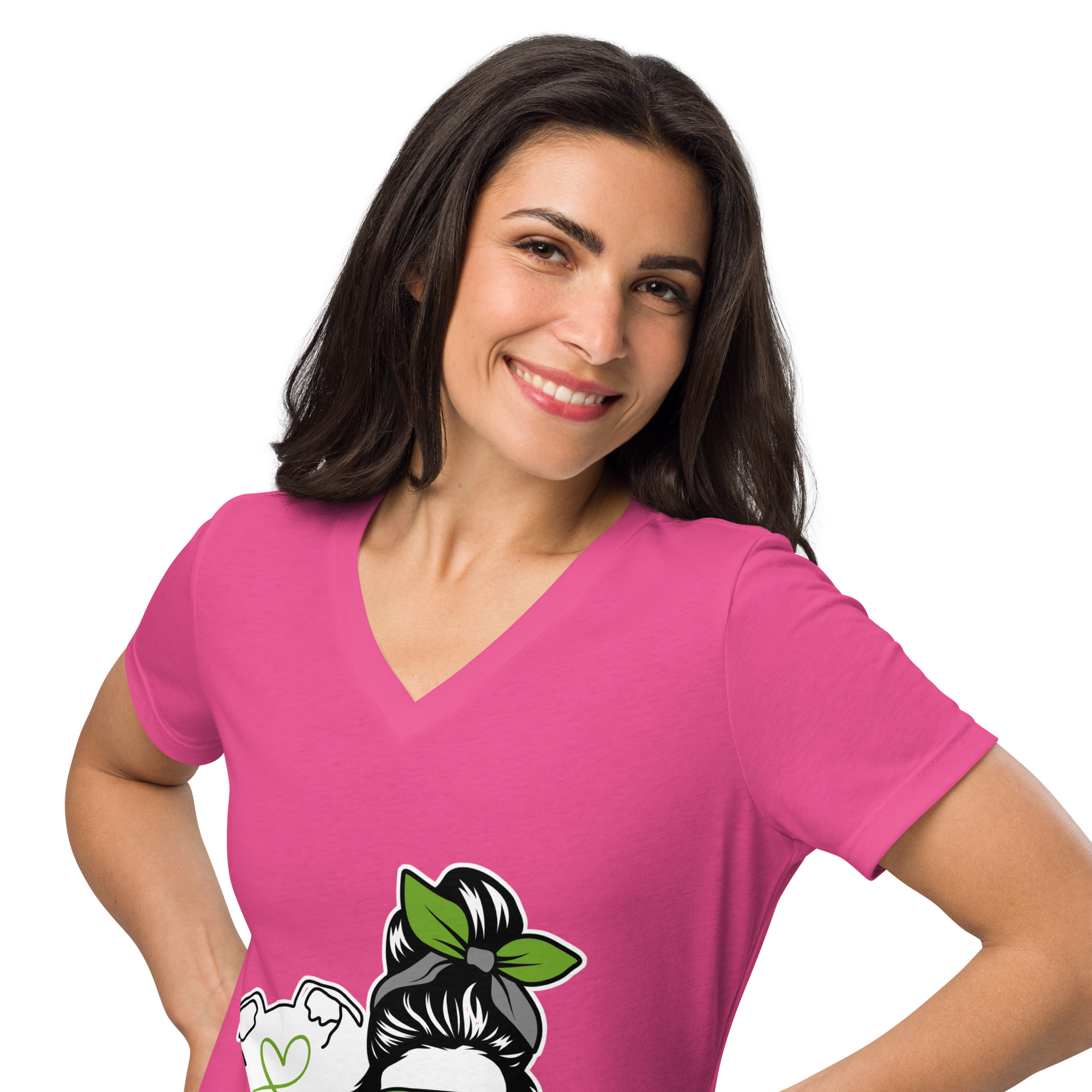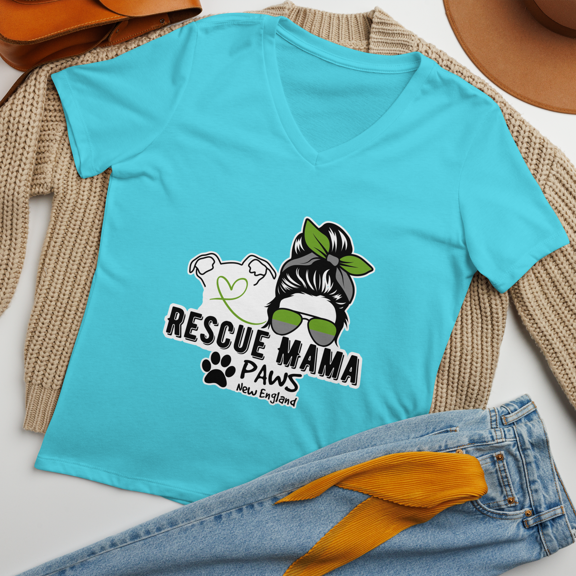 This flattering V-neck tee features a striking silhouette of a confident woman in sunglasses, paired with a loyal pup whose heart-shaped nose says it all. Designed in signature PAWS New England colors, it’s a bold yet meaningful tribute to the women who open their hearts—and homes—to dogs in need.