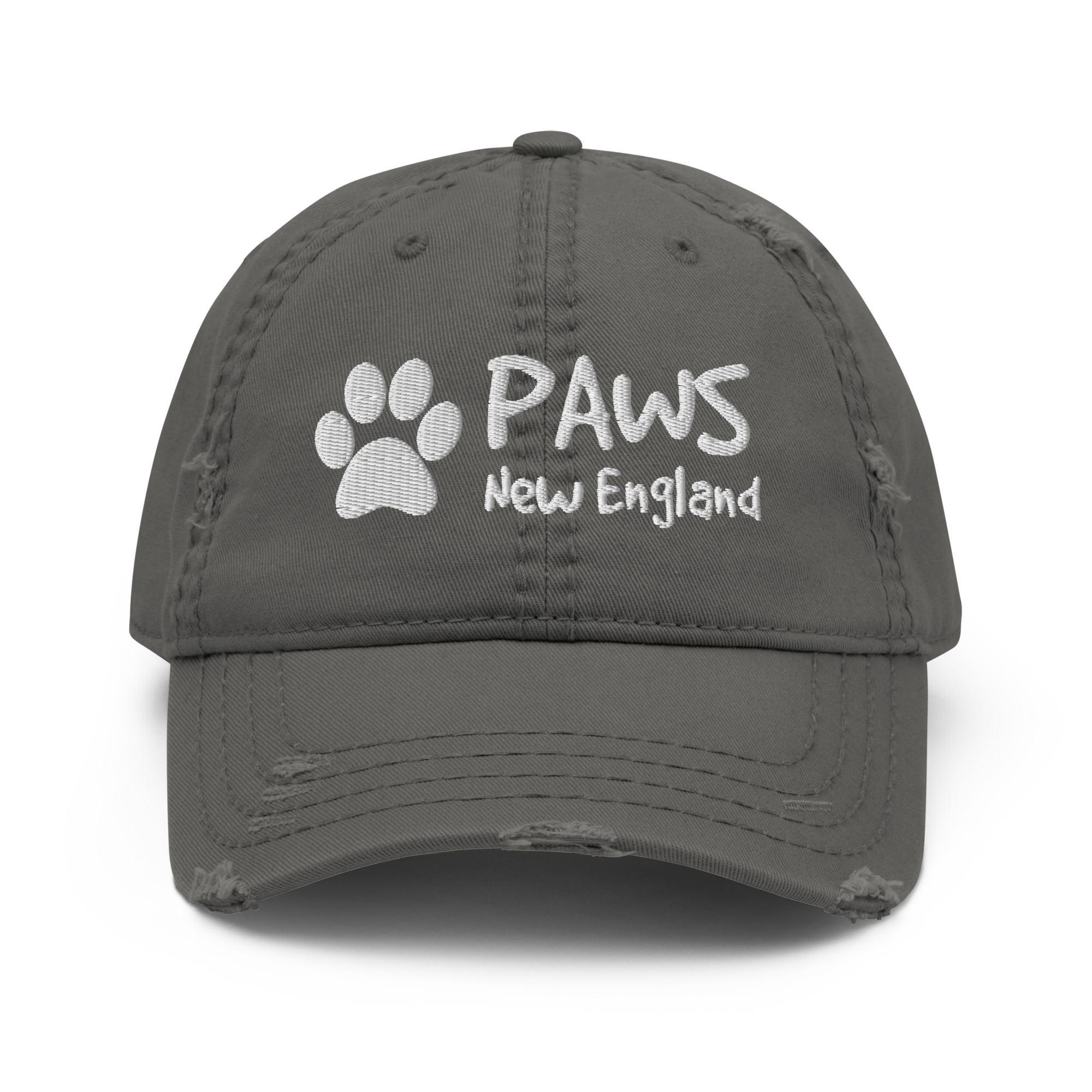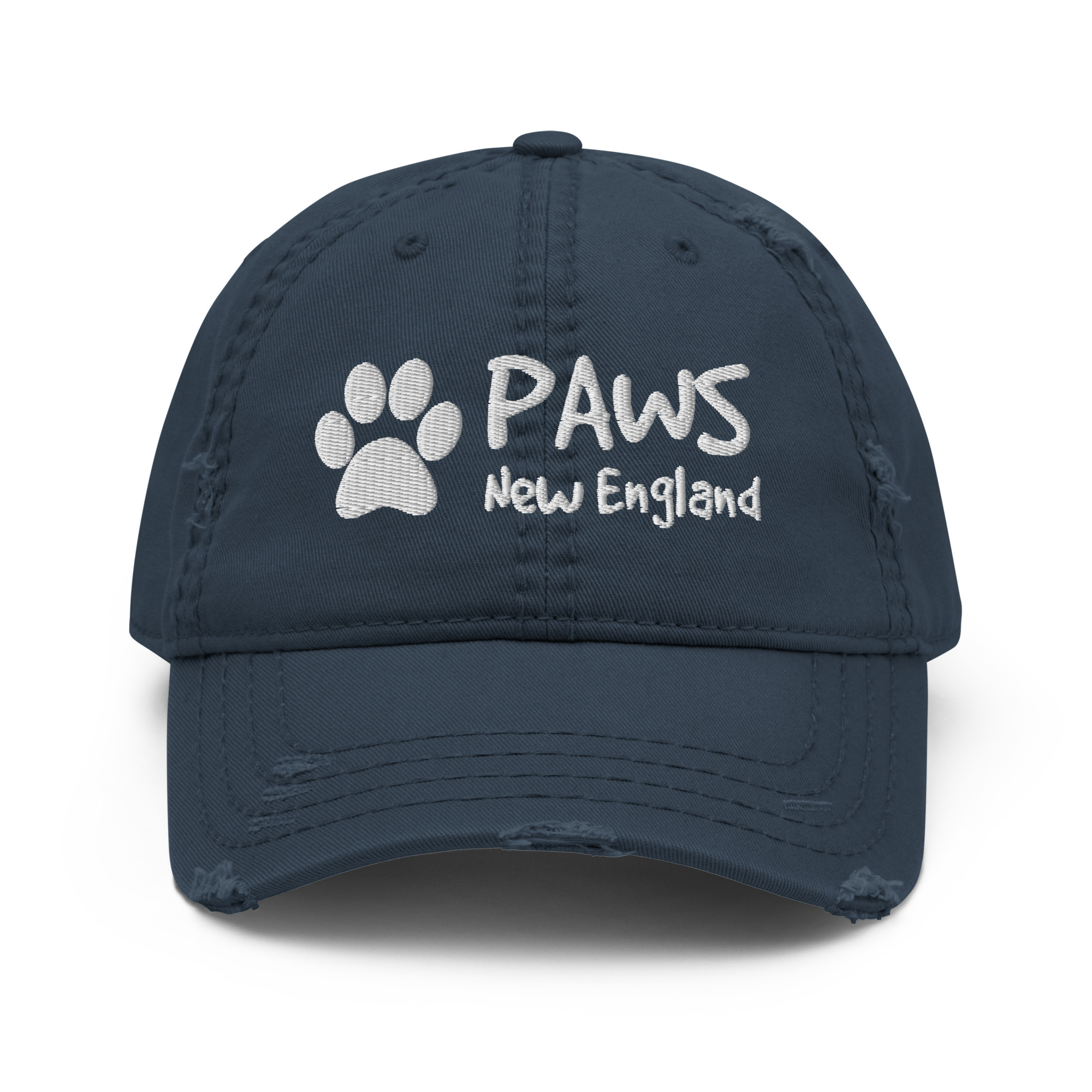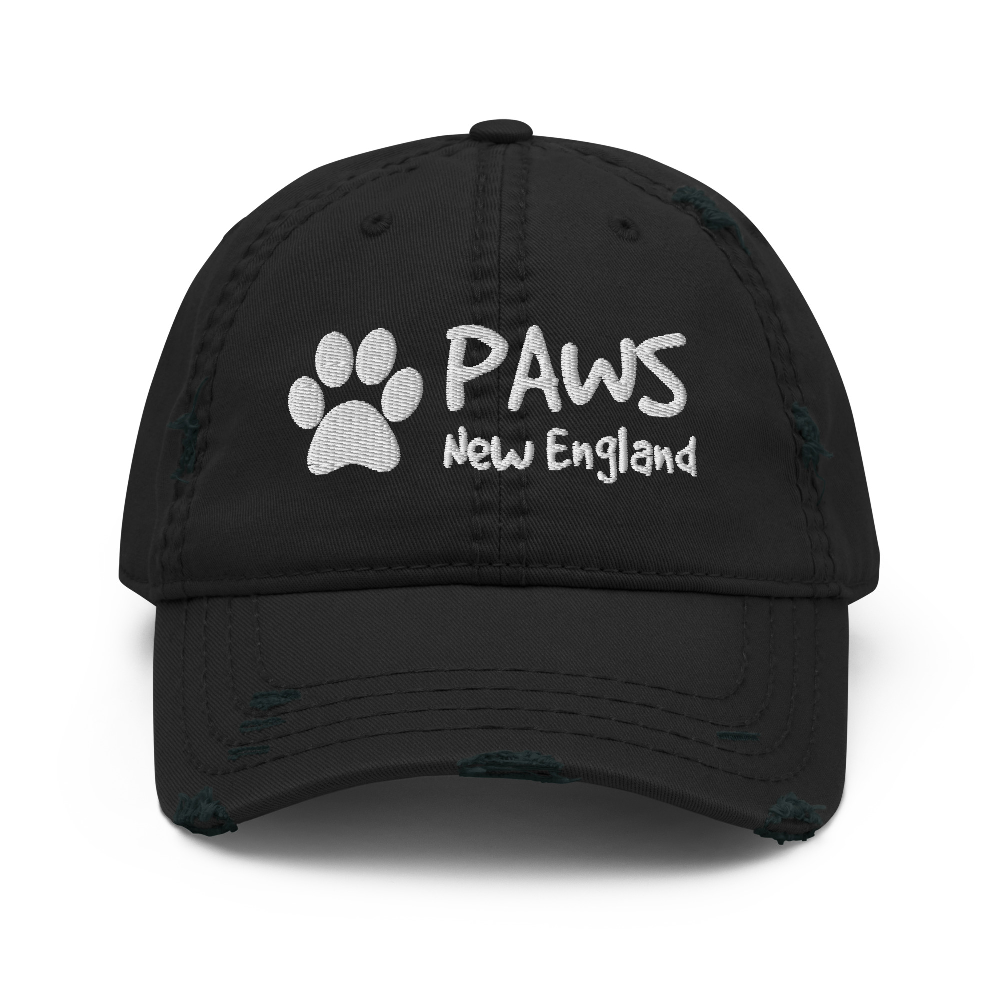 This premium distressed hat features the classic PAWS logo embroidered boldly on the front, with a smaller PAWS mark stitched on the back — a subtle detail that completes the look.